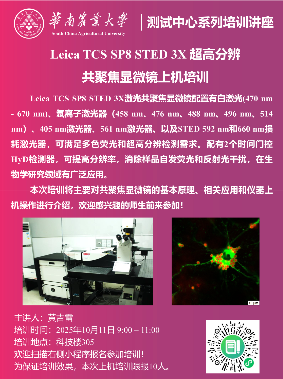 测试中心系列培训讲座(2025年第9期):Leica TCS SP8 STED 3X超高分辨共聚焦显微镜上机培训