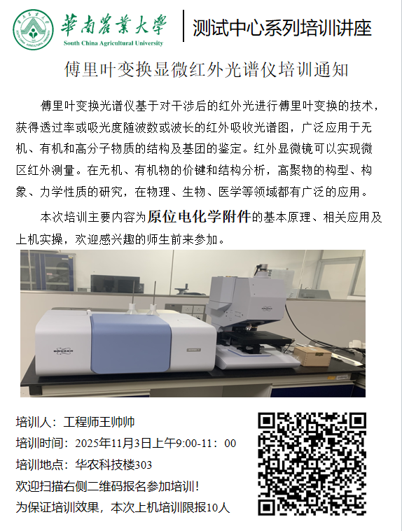 测试中心系列培训讲座(2025年第11期):傅里叶变换显微红外光谱仪培训通知