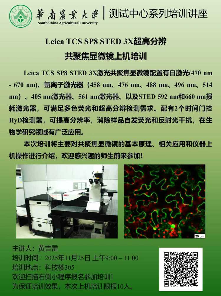 测试中心系列培训讲座(2025年第14期):Leica TCS SP8 STED 3X超高分辨共聚焦显微镜上机培训